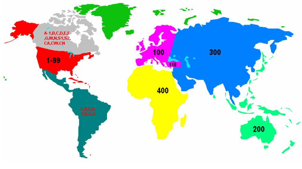 Yönetim Bölgelerinin özellikleri aşağıdaki tabloda verilmiştir. Türkiye 100 kodlu olan Avrupa bölgesindedir.