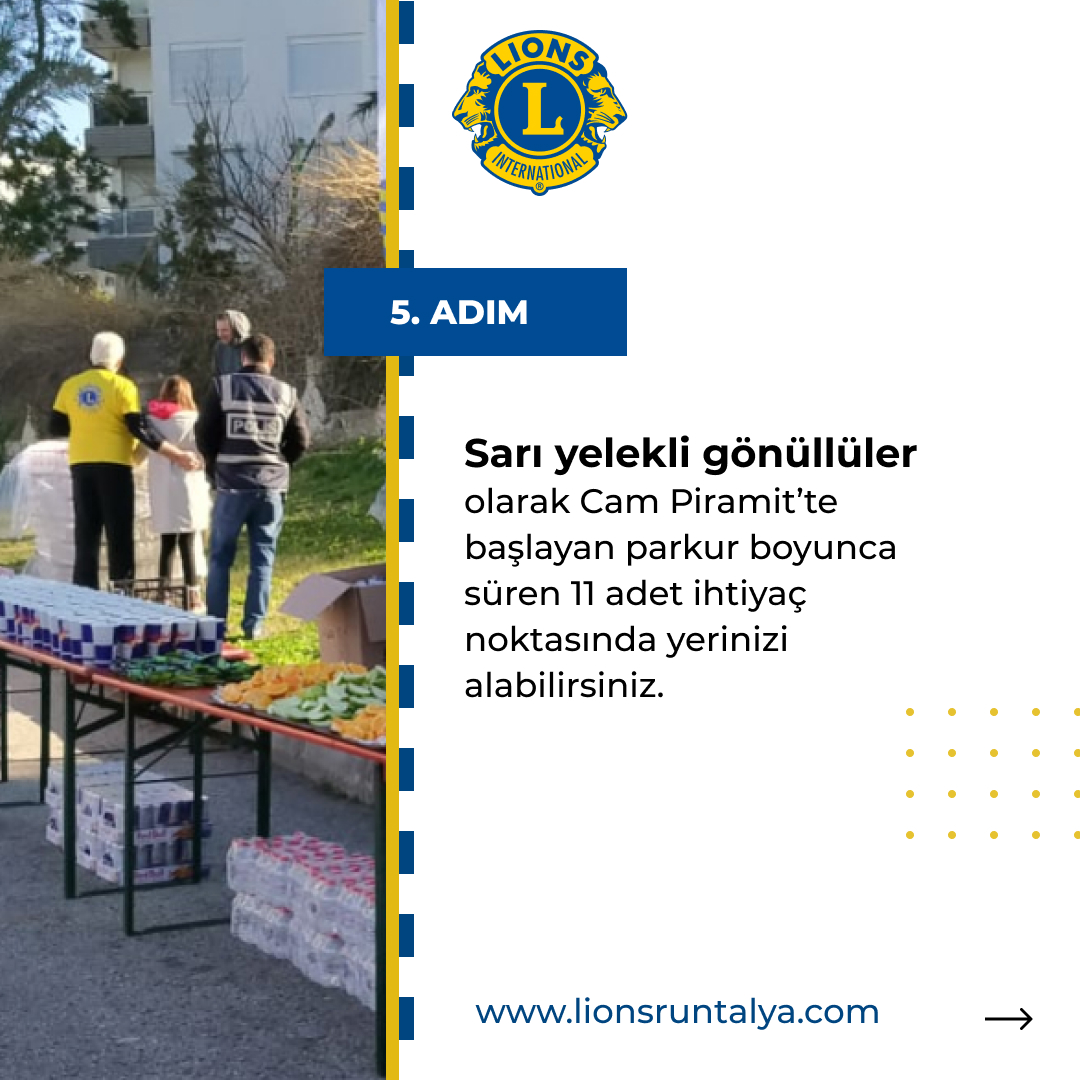 Lions bu dev organizasyonda Co-Sponsor (MALZEME-TEDARİK portakal, Elma, muz sponsoru) ve 11 adet tüm ihtiyaç noktalarinda "Gönüllü" olarak yer almaktadır.