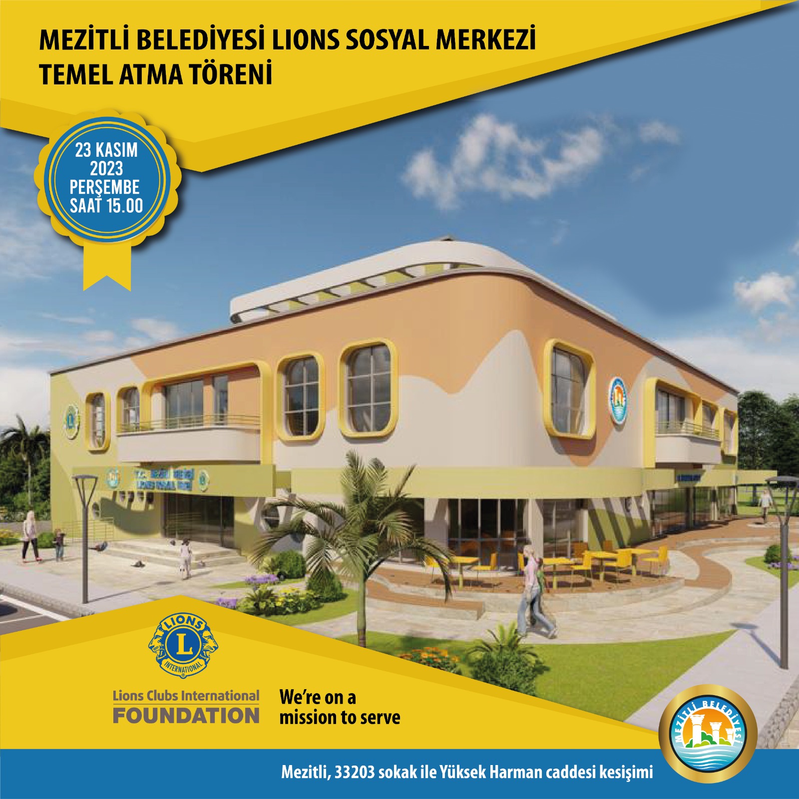 Lions Sosyal Merkezleri’nden birincisinin inşaatı 23 Kasım Perşembe günü saat 15:00 te düzenlenecek tören ile Mersin’in Mezitli İlçesinde başlayacak. Her biri yaklaşık 2000 Metrekare kapalı alanda 120 çocuk ile 150 kursiyer kapasitesine sahip merkezler anılan ilçelerdeki yerel yönetimlerle ile birlikte işletilecek. İnşaatların her birisinin 6 ayda tamamlanması hedeflenmektedir.