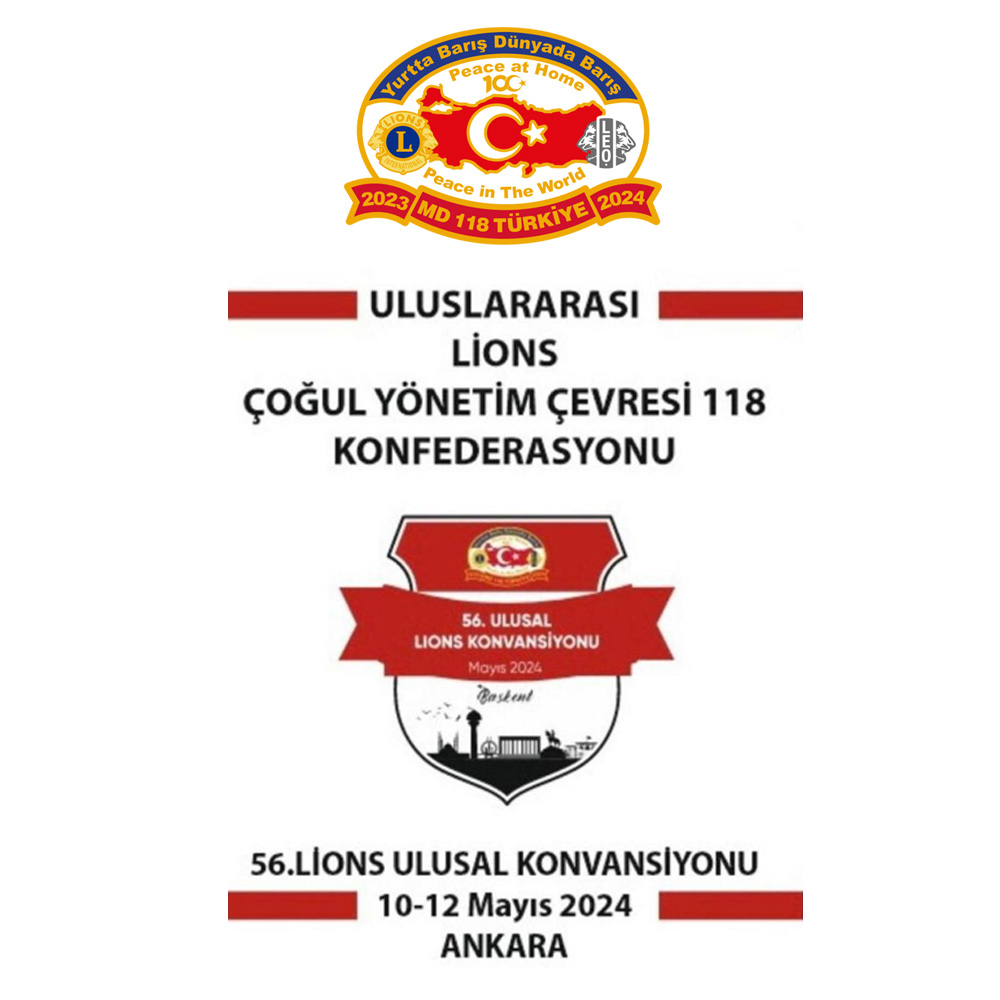 Uluslararası Lions Çoğul Yönetim Çevresi 118 Konfederasyonu 2024 yılı Olağan Genel Kurul Toplantımız; 4 Mayıs 2024 Cumartesi günü saat 10.00’da